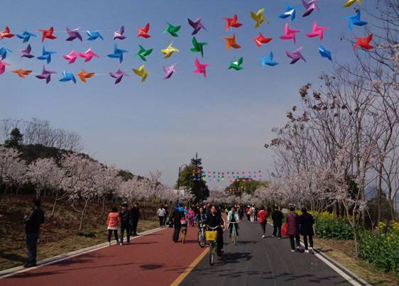 黃石市在磁湖沿線種下約5000棵不同品種的櫻花樹,如今已初具規(guī)模。每年三、四月花季到來,櫻花盛開成為黃石市一道亮麗的風景線。