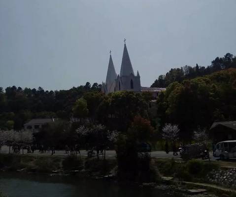 遙遙相對的是新落成的哥特式黃石天主教堂,坐落于團城山公園西側(cè),睡美人山北側(cè),三面青山環(huán)抱,臨磁湖碧波萬頃,藏城中卻遠塵囂,最為修心養(yǎng)性之所,遠遠望去,那象牙式的(仿)哥特式尖頂建筑,襯差紅瓦綠樹倒映在碧綠中,顯得格外幽靜肅穆。