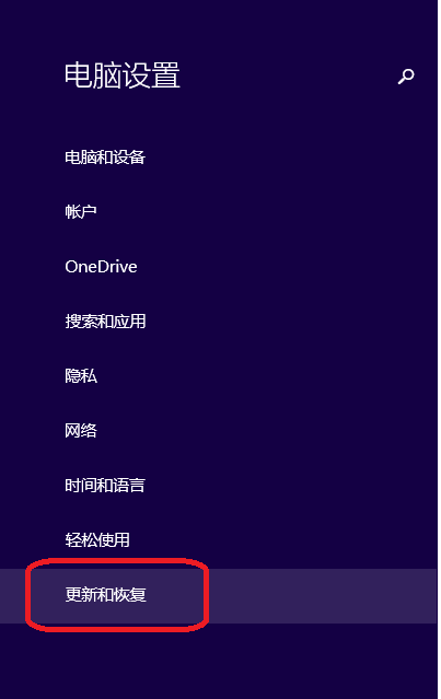 2、再依次點(diǎn)擊更改電腦設(shè)置、更新和恢復(fù)、恢復(fù)、立即重啟,如下圖所示:
