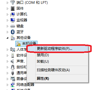 5、在感嘆號(hào)或問號(hào)的設(shè)備中找到USB MSC,右鍵,選擇更新驅(qū)動(dòng)程序軟件