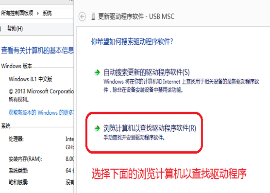 6、首先選擇下面的“瀏覽計(jì)算機(jī)以查找驅(qū)動(dòng)程序軟件”,如下圖: