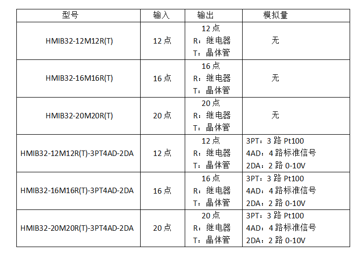 附:7寸HMIB32系列觸摸屏PLC一體機(jī)選型表