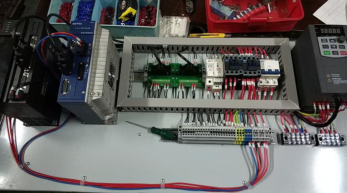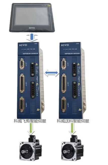 科威智能伺服集伺服驅(qū)動(dòng)、PLC控制、運(yùn)動(dòng)控制于一體,正好適用于調(diào)直切斷機(jī)系統(tǒng)??仆悄芩欧{(diào)直切斷機(jī)系統(tǒng)方案為觸摸屏、飛剪智能伺服、送料智能伺服。