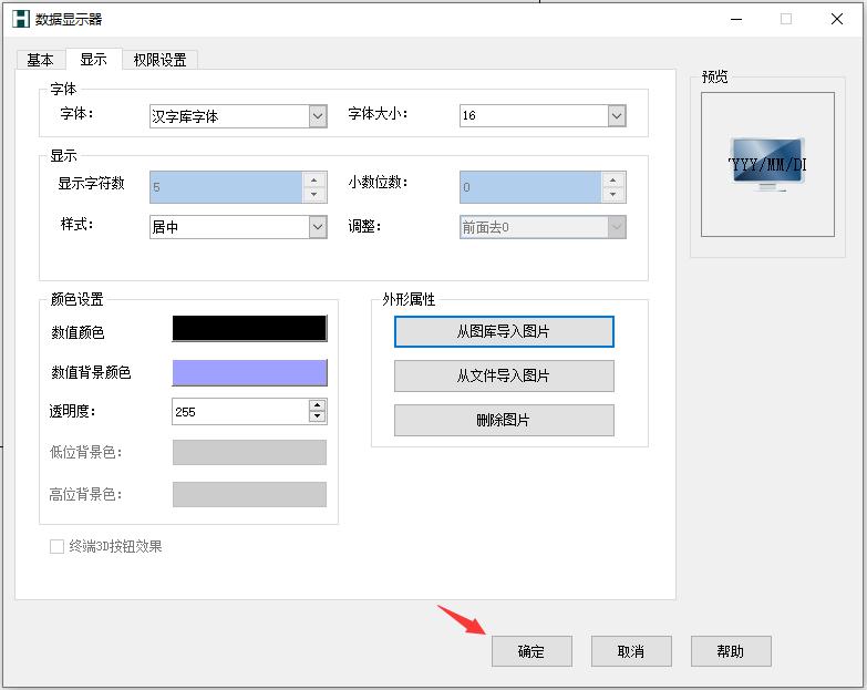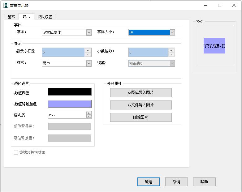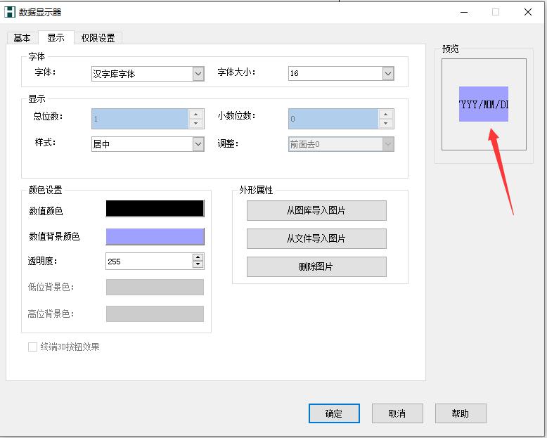 定義:對數(shù)值顯示器外觀、背景色、文本和文本對齊方式進行設(shè)置