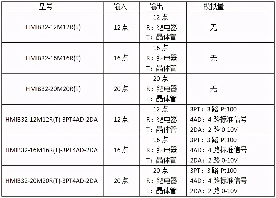 附:7寸HMIB32系列觸摸屏PLC一體機選型表